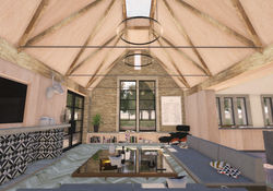 The principle elevational composition will be weathered Cotswold Stone cladding matching the existing house, and the majority of properties in the surrounding area. Metal framed Crittal style doors and windows shall punctuate the façades, set within traditional stone mullion & jamb surrounds, further enhancing its relationship to the visual characteristics seen on the existing residence and surrounding area.